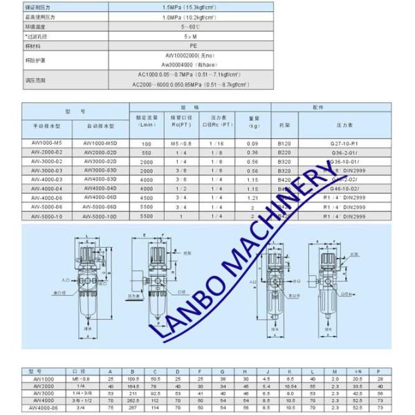 AW2000-02 Pneumatic air filter regulator AW2000-02 1/4 inch SMC type air treatment Images |